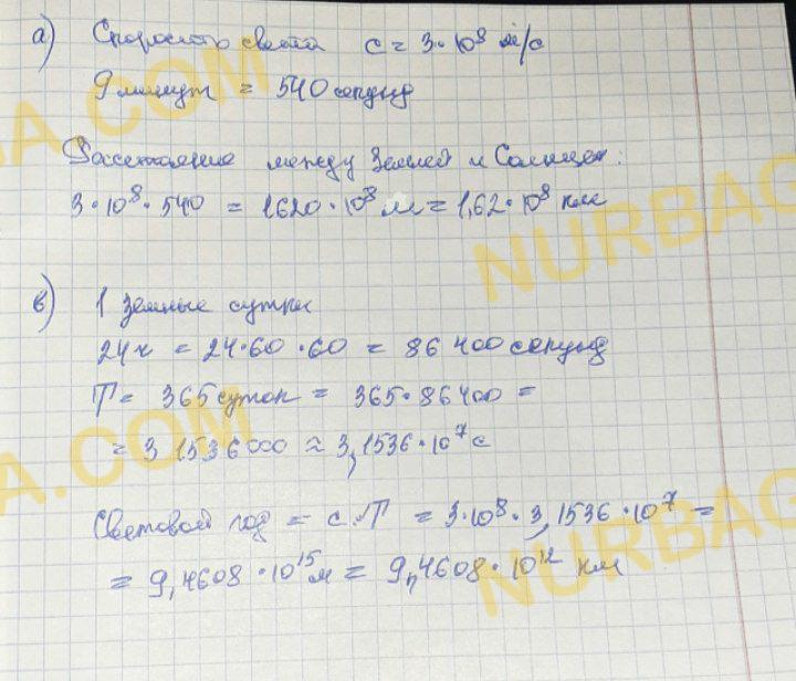 а) Солнечный луч достигает Землю через 9 минут. Найдите растояние между Солнцем и Землей.