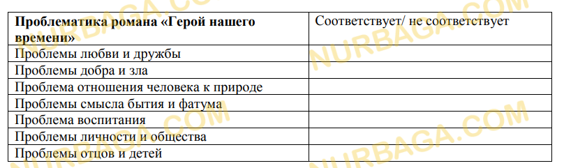 Отметьте галочкой проблемы, затронутые в романе М. Ю. Лермонтова «Герой нашего