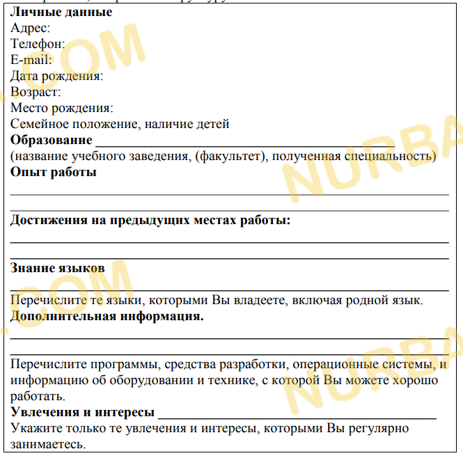 Составьте резюме, опираясь на структуру.