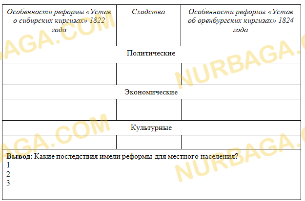 СОР № 1 История Казахстана 8 класс Царские реформы 1822-1824 гг.