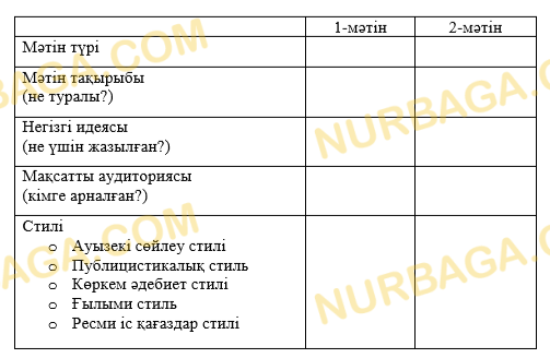 Шығармаларды түсініп оқыңыз. Екі мәтінді кесте бойынша салыстырыңыз.
