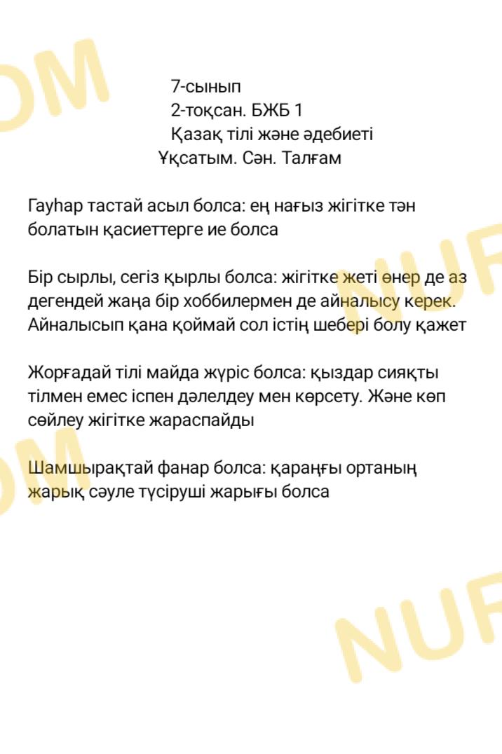 СОР № 1 Казахский язык и литература 7 класс Ұқсатым. Сән. Талғам