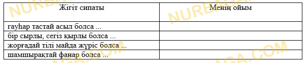 Кестені толтырыңыз. Жігіт сипатын ашып, өз ойыңызды жазыңыз.