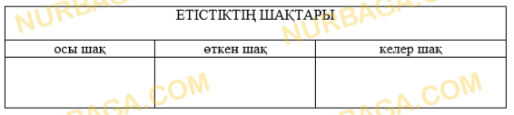 Мәтінді оқып, етістіктерді теріп, берілген кестені толтырыңыз. Мәтінді өткен шақта баяндаңыз. Мәтін бойынша келер шақта сұрақтар дайындаңыз.