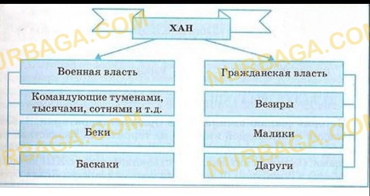 Слова для справок: визири, беки, даруги, баскаки, малики, командующие туменами, тысячами, сотнями, десятками.