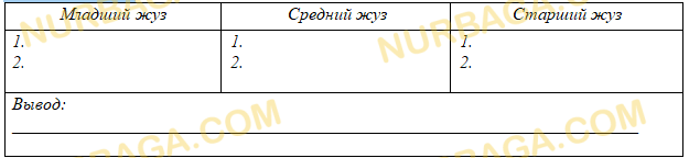 2. Заполните сравнительную таблицу об особенностях присоединения каждого жуза, затем сделайте вывод.