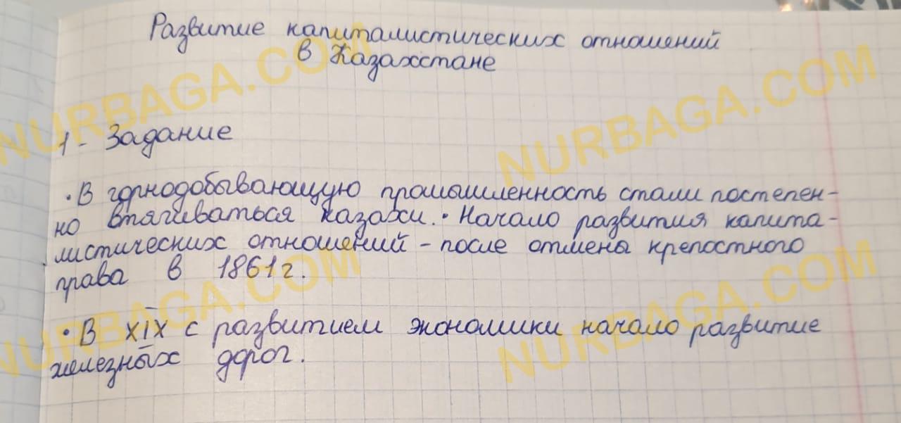 СОР № 1 История Казахстана 8 класс Развитие капиталистических отношений в Казахстане