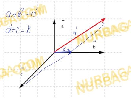 Вектора a,b,c лежат на координатных осях. Постройте вектор суммы этих векторов.