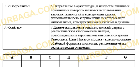 Соотнесите направления искусства и общественный процесс, повлиявший на него развитие. Ответы занесите в таблицу.