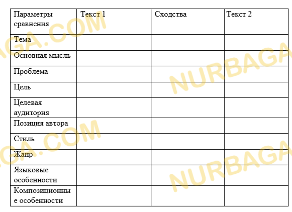 2. На основе данных таблицы напишите сравнительный анализ текстов.