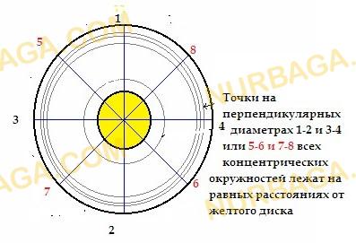 В круглой пластинке надо просверлить 8 одинаковых отверстий на равных друг от друга расстояниях и равноудаленных от центра пластинки. Как это сделать?