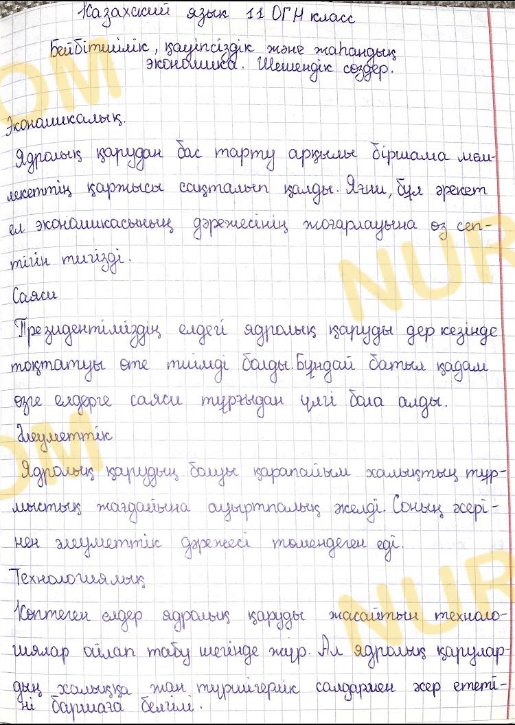 СОР № 1 Казахский язык 11ОГН класс Бейбітшілік, қауіпсіздік және жаһандық экономика. Шешендік сөздер