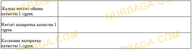 2. Мәтіннің негізгі ойына қатысты және негізгі, қосымша ақпараттарға байланысты 1 сұрақтан құрастырыңыз