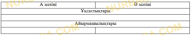 Мәтіндерді оқып, оларды өзара салыстырыңыз. Мәтіндердің көтерген тақырыбы, жалпы мазмұны жағынан ұқсастықтары мен айырмашылықтары бар ма? Кестені толтырыңыз.