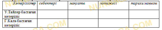 «Шаруалар көтерілісінің себептері мен маңызы» кестесін толтырыңыз.