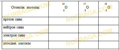 b) Оттектің изотоптары үшін атомдық массасы мен құрамын көрсетіңіз: