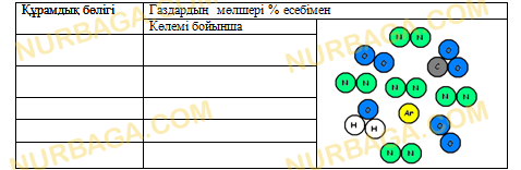 Ауаның сапалық құрамын кестеге толтырыңыз.
