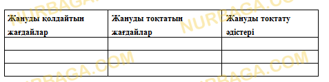 Жануды қолдайтын және болдырмайтын жағдайларды атап, кестені толтырыңыз.
