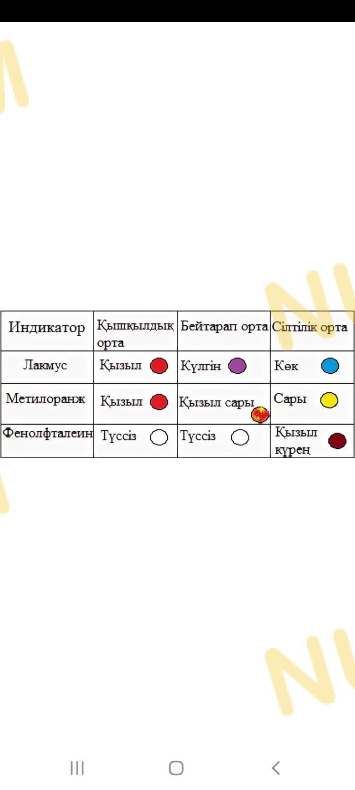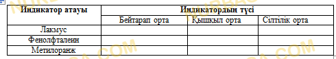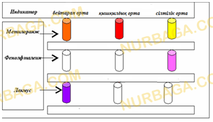 Мақсаты: қышқылдық, негіздік орталарды индикатордың түсін өзгертуі арқылы анықтауды үйрену.