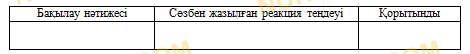 Реакция өнімдерін анықтаңыз. Жұмыс туралы есепті кестеге толтырыңыз.