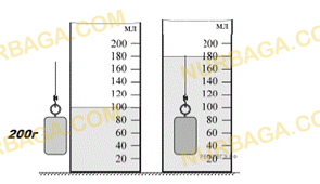 На рисунках показана гирька, помещенная в мензурку с водой. Масса гирьки указана на рисунке.