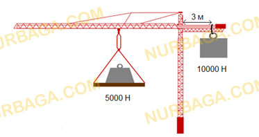 а) На каком расстоянии от оси вращения должна расположиться нагрузка в 5000 Н, чтобы кран оставался в равновесии?