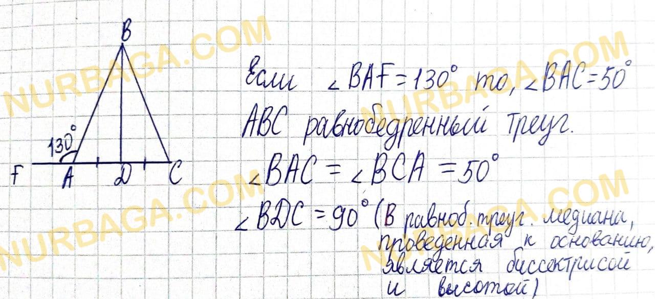 3. В равнобедренном треугольнике АВС с основанием АС проведена медиана BD. Найдите градусные меры углов BDC и BCA, если и ∧=130° .