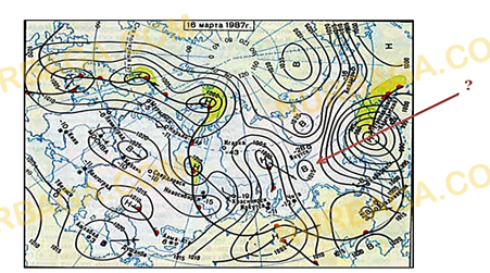a) Определите область атмосферного давления по синоптической карте (рисунок). ________________________