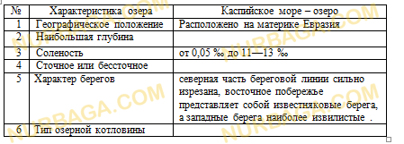 Дополните характеристику Каспийского моря – озера, используя тематические карты. .