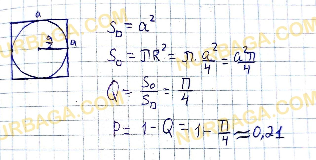 Найдите вероятность того, что точка, брошенная в квадрат со стороной а, НЕ окажется