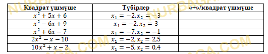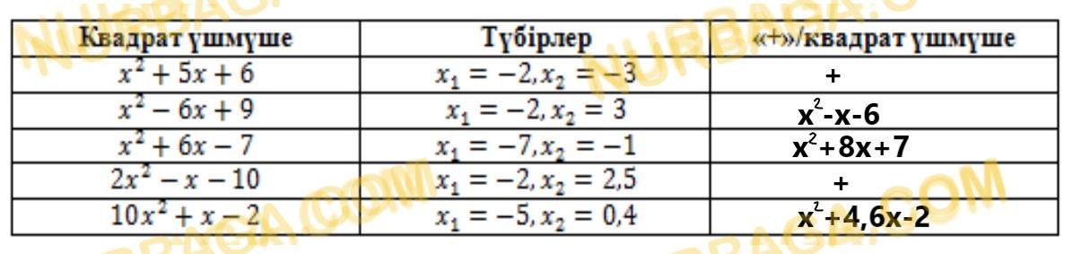 — түбірлері болмаған жағдайда, қай үшмүшенің түбірі болатындығын анықтаңыз