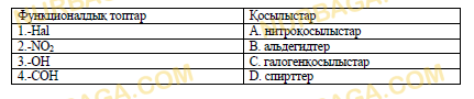 2. Қосылыстардың класын сәйкес келетін фунционалдық топтармен сәйкестендіріңіз: