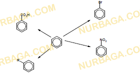 а)Себебі, қос байланыс болғандықтан, бензол қосылу реакцияларынан гөрі, орынбасу реакцияларына бейім; бензол молекуласындағы барлық көміртек атомдарының араларындағы байланыстардың ұзындықтары бірдей