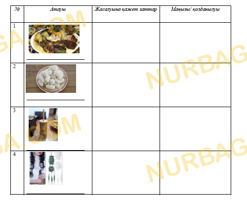 Берілген қазақ ұлтының материалдық мәдениетінің атын атап, маңызын көрсетіңіз.